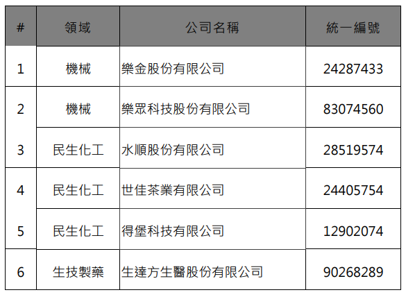 一、114年度3月份「小型企業創新研發計畫(SBIR)」決審會議,審議通過機械領域2項、民生化工領域3項、生技製藥領域1項,合計6項中小企業所提創新技術/服務研發計畫之研發經費部分補助,核定名單詳如附檔。